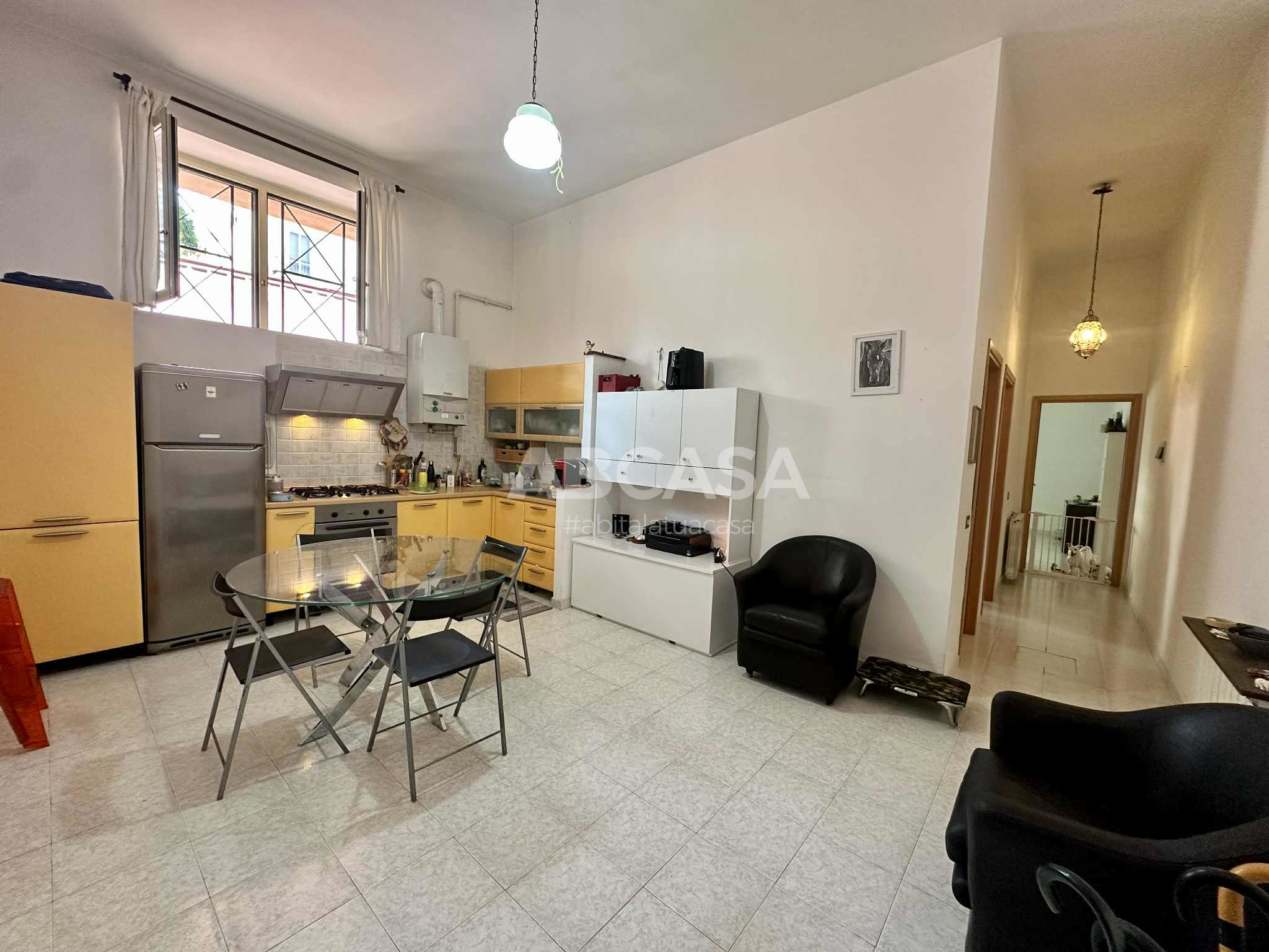 Con una superficie commerciale di 86 mq, l'appartamento è composto da un ampio soggiorno con cucina a vista, due camere da letto, di cui una con balcone e un bagno finestrato con doccia.
